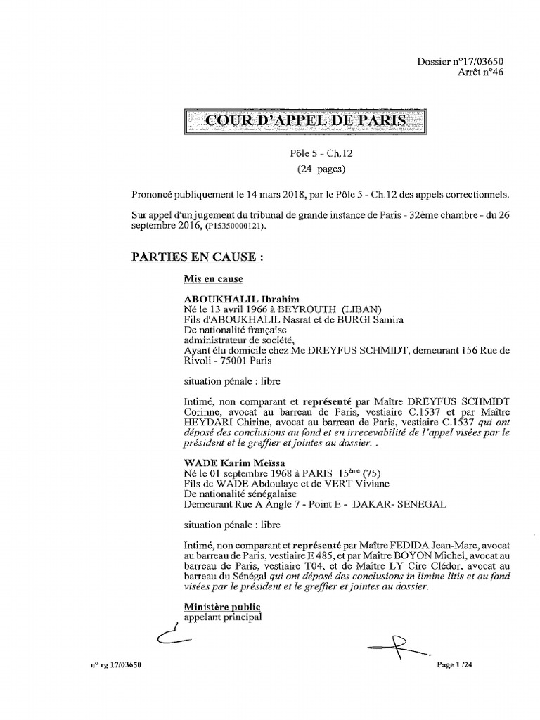 Arr?T De La Cour D Appel